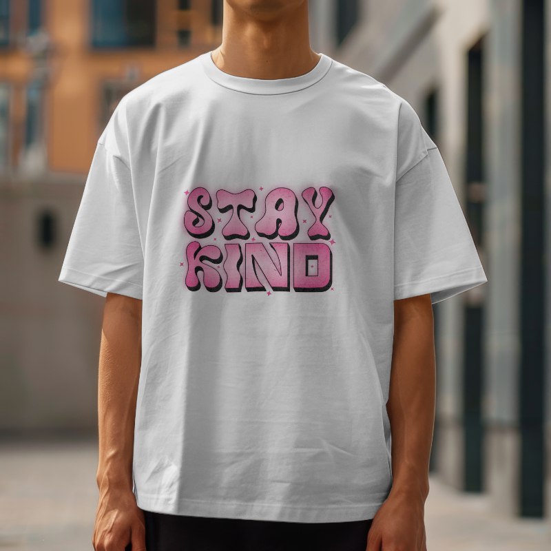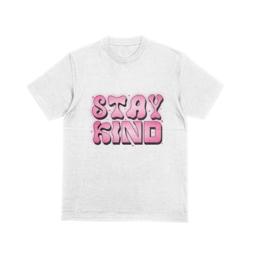 - "Stay Kind" — white with retro-inspired pink and black "Stay Kind" lettering