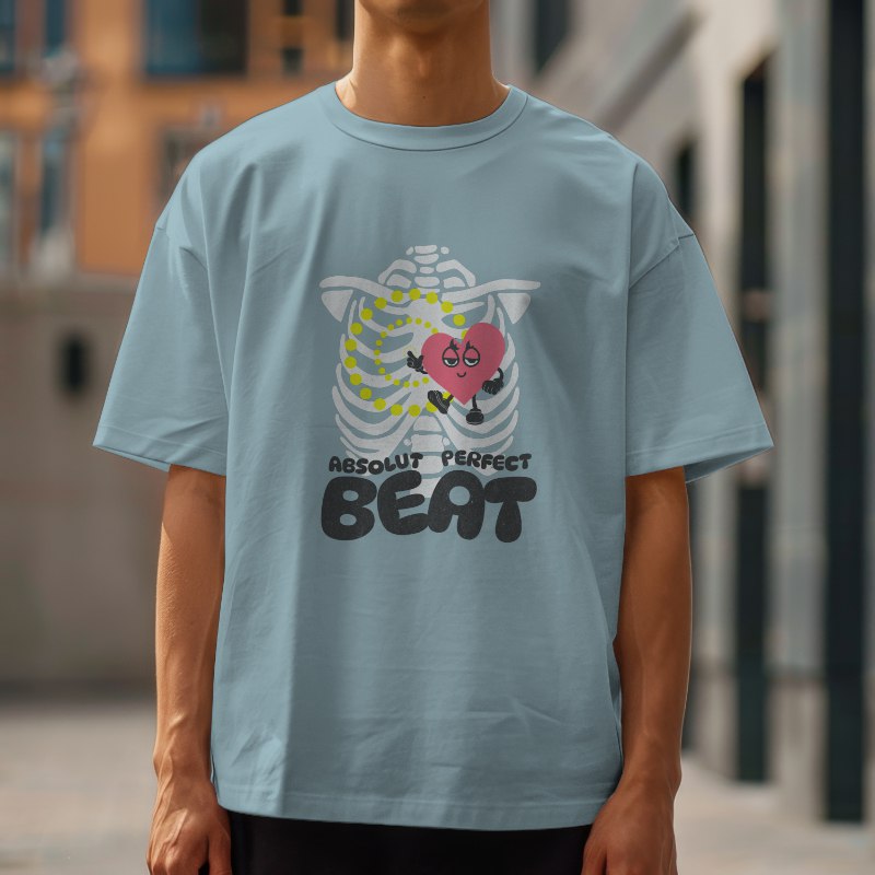 - "Perfect Beat" — grey with playful heart print and "Perfect Beat" design